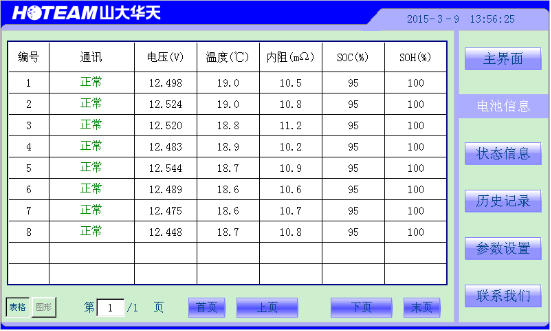 4.采用先進算法計算分析各單體蓄電池剩余電量SoC (State of Charge)、健康狀態SoH(State of Health),為蓄電池的維護、更換提供可靠依據;